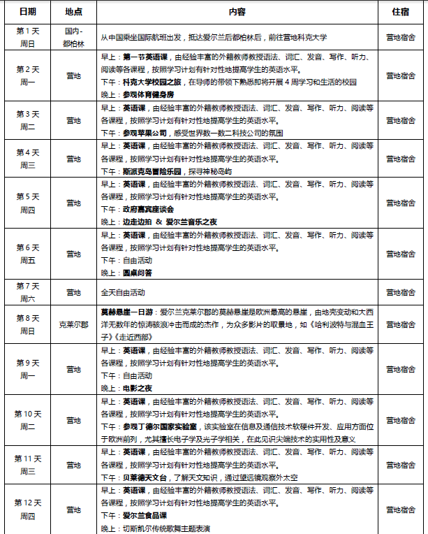 爱尔兰科克大学为盘锦校区的友好合作伙伴,该校现面向校区学生开展英语提升夏令营项目。现将相关事宜通知如下,欢迎感兴趣的同学及时报名: