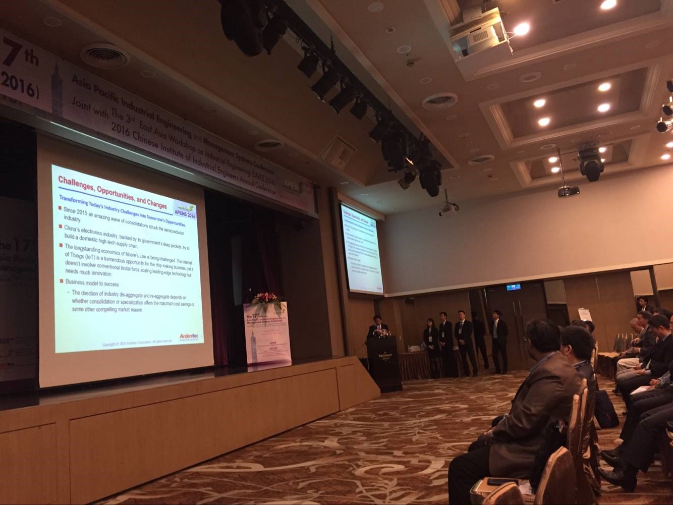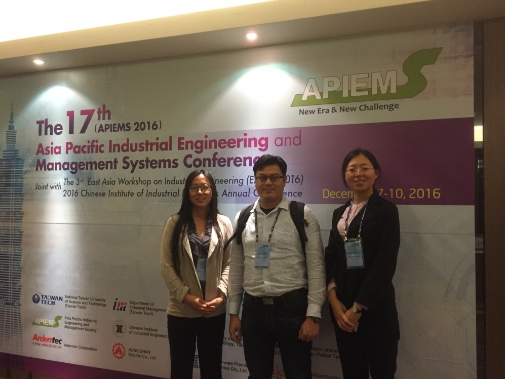 2016年12月6-11日,由National Taiwan University of Science & Technology主办的The 17th Asia Pacific Industrial Engineering and Management Systems Conference (2016亚太工业工程与管理系统会议)在中国台湾台北福华饭店举行。该会议每一到两年举办一次,会议主题包括人工智能、物流管理、产品设计与研发、供应链管理、可持续发展管理等。本次会议共有10个分会,参会人数400余人,邀请了众多国际知名专家,包括亚太工业工程师学会会长江行权、前任会长Anthony SF Chiu、IMDS主编Hing Kai Chan、JCLP、副主编Ming-Lang Tseng、RCR主编徐明等。