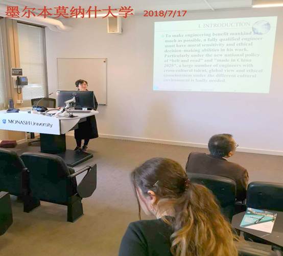 ICDME2018国际会议全称为2018 The 3th International Conference on the Design and Manufacturing Engineering,是由莫纳什大学工程学院主办的国际会议,于7月16日至18日在澳大利亚莫纳什大学举办。本届会议邀请了来自全球各知名大学的专家学者与会,共同就设计与制造工程的前沿技术及管理问题展开讨论和交流。马力教授在会议上发表了题为《Ethical Dilemma and Engineers’ Ethical Decision-making Abilities: Thoughts on Integrating Engineering Ethics Education into Engineer Training Scheme》的口头报告,并聆听了其他各国专家学者们的精彩报告,与他们就最新的学术前沿问题开展交流与讨论。