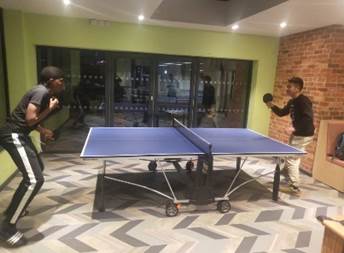 莱斯特国际学院的同学们还在英语课上同来自世界各国的同学交流,互相介绍自己国家特有的风俗文化,同学们的交流兴趣异常浓厚,英语课结束之后也迟迟不愿离去。赵仁誉同学更是发挥特长,与莱大学生进行乒乓球交流,为他们讲解乒乓球的技术要领,并亲自示范进行现场演示。同学们还积极与外国友人进行合影留念,互送礼品。